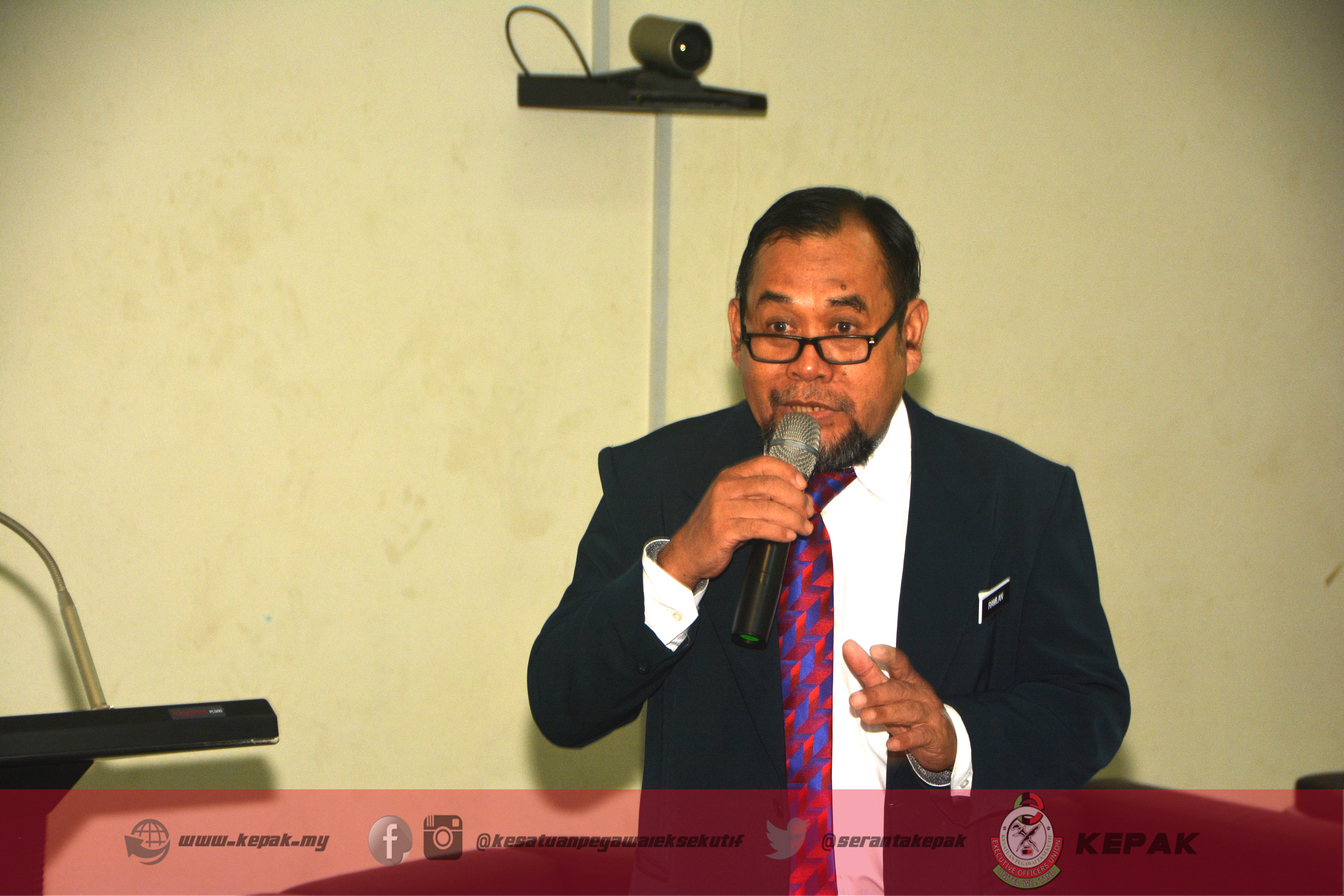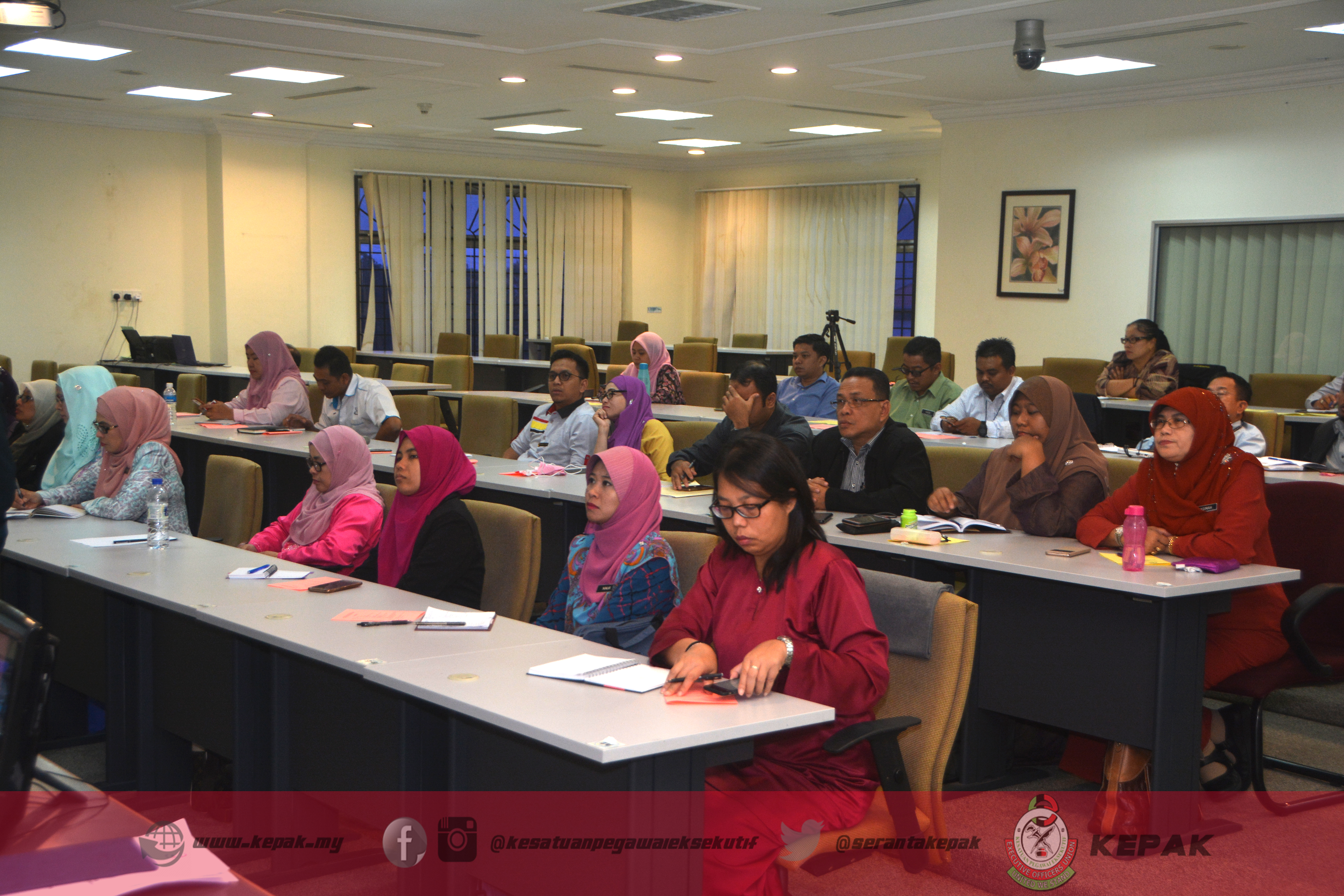 27 – 28 Mac 2018, Bangi – Bagi mengukuhkan perpaduan dan kefahaman dalam konsep berkesatuan, Kesatuan Pegawai Eksekutif (KEPAK) Pusat berkerjasama dengan Jabatan Hal Ehwal Kesatuan Sekerja Malaysia (JHEKS) telah mengadakan Bengkel Pengukuhan Organisasi Kesatuan 2018 pada 27 sehingga 28 Mac 2018 di Institut Latihan Kehakiman dan Perundangan (